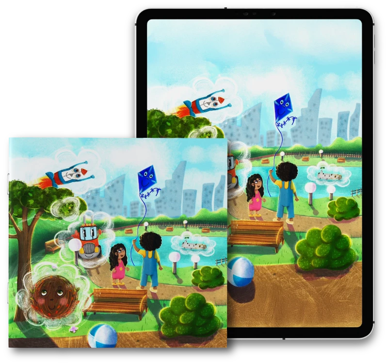 Your children will be transported into the imaginary world of Ky and Kate as they fly their Kite and imagine ten inanimate objects springing to life. Each character embarks on an adventure that is relatable with your children.